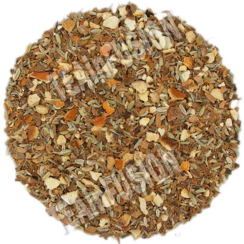 Anís verde grano, hinojo semillas, canela quillings, corteza de naranja y ginseng blanco raíz.