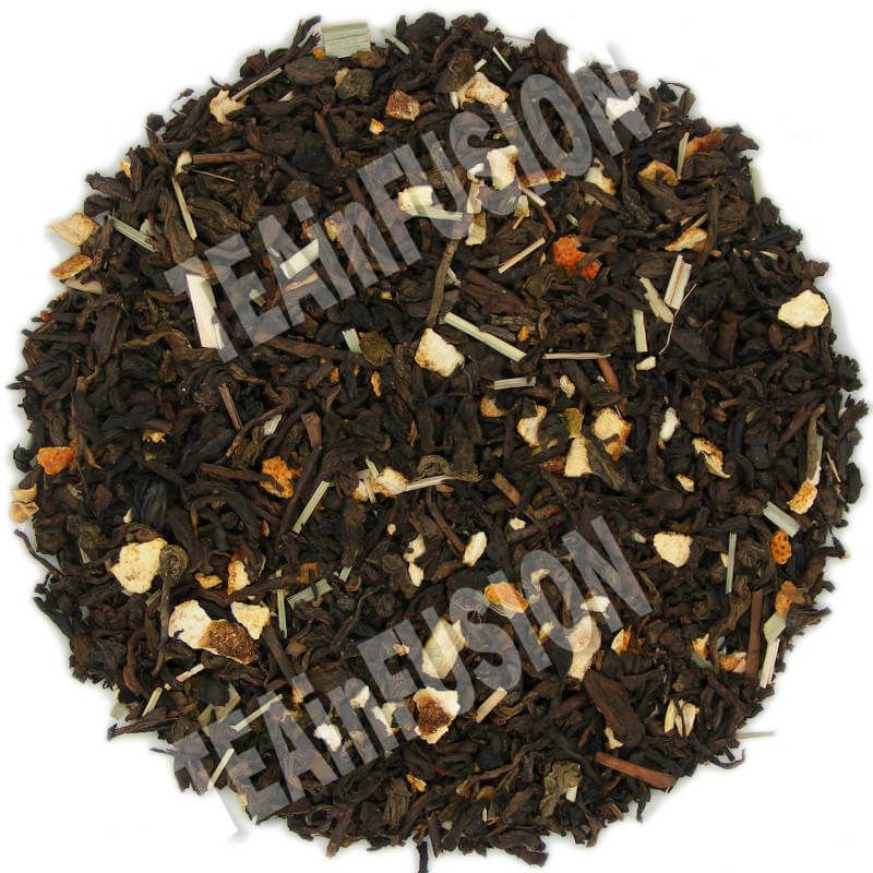 Té rojo Pu-Erh, corteza de naranja, corteza de limón, Lemon grass y aroma natural.